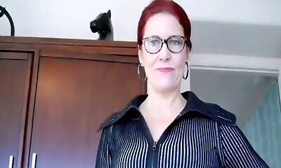 Teasing redhead milf with glasses and immense boobs sucks cock