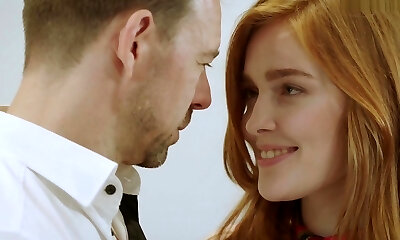 Cute redhead teen with angelic eyes gives unbelievable head