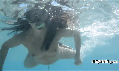 Russian swimming babe Lina Mercury displays striptease under the water