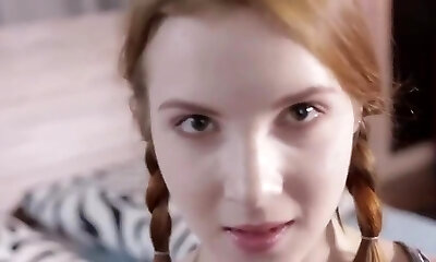 Amazing Red-haired college girl college girl with Pigtails