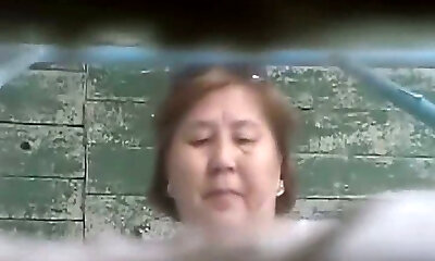 Mature Chinese lady in the outworn toilet room filmed on hidden cam