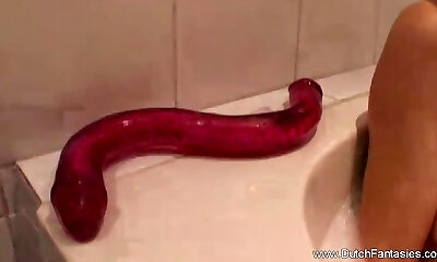 Slamming Her Fuck Hole on Gigantic Dildos